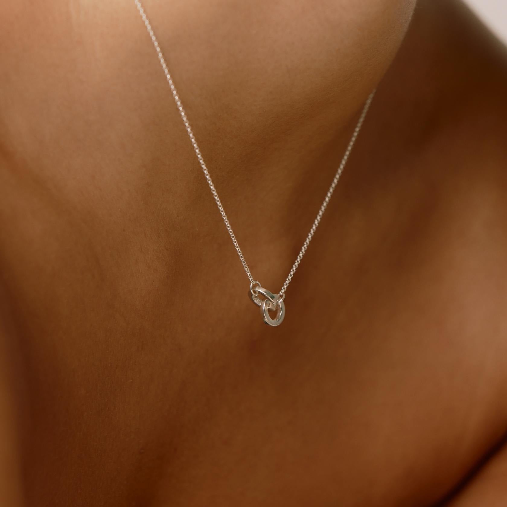 Connection. Need we say more... Our connection necklace, two rings, worth their weight in Sterling silver or 24K Gold dipped sterling silver. Solid rings that feel as good, as they look. For anyone and everyone that you connect with. Especially yourself.