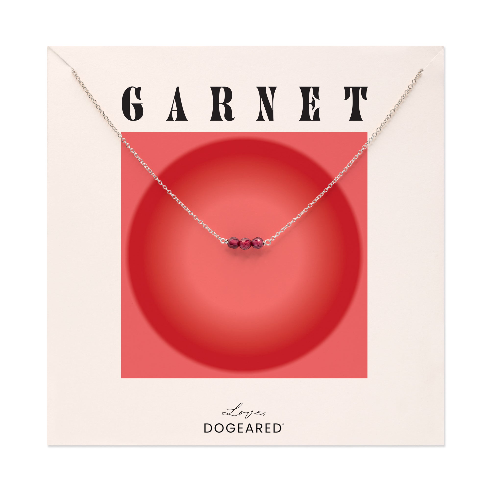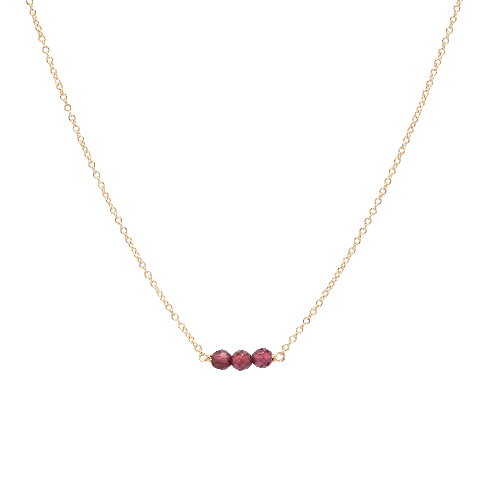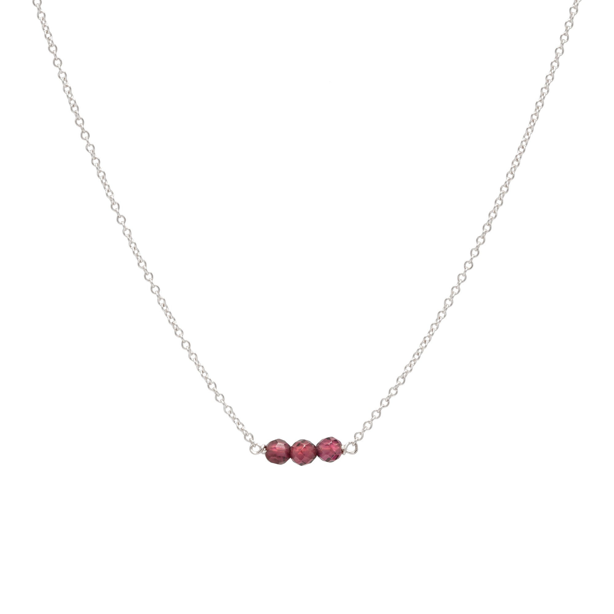 Our birthstone jewels, a best selling collection! Three little gems on a dainty chain with garnet, a symbol of love and January.