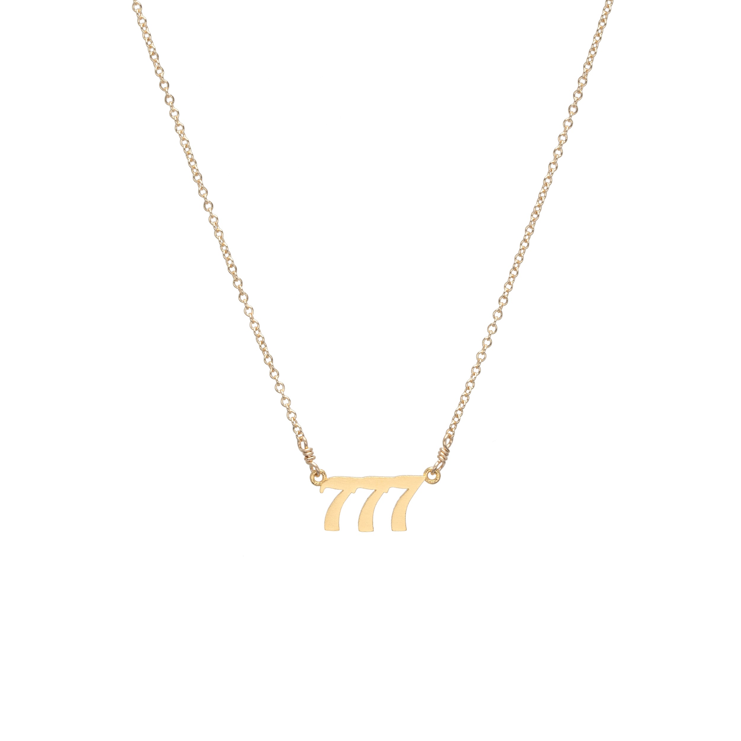 777.   Numbers that represent luck, harmony and good fortune.  Our 777 Angel Number Necklace gives you all the reminders that you've got this.  With a little help from your angel friends. Daily wear advised.