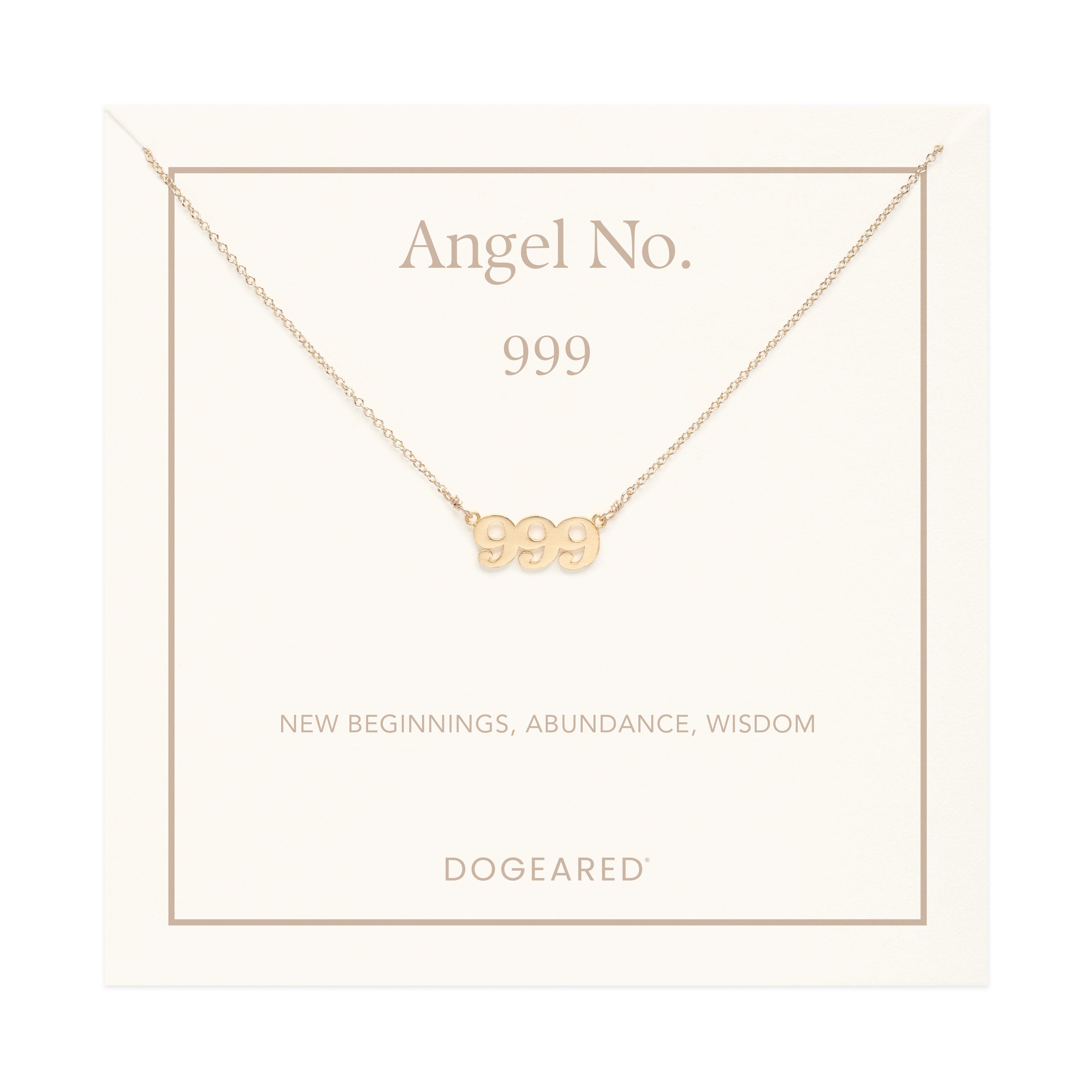999.   Numbers that represent new beginnings, abundance and wisdom. Our 999 Angel Number Necklace gives you all the reminders that you've got this.  With a little help from your angel friends. Daily wear advised.