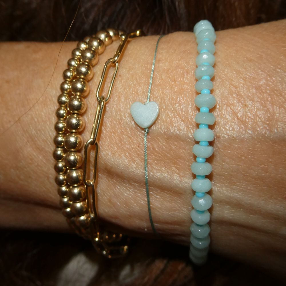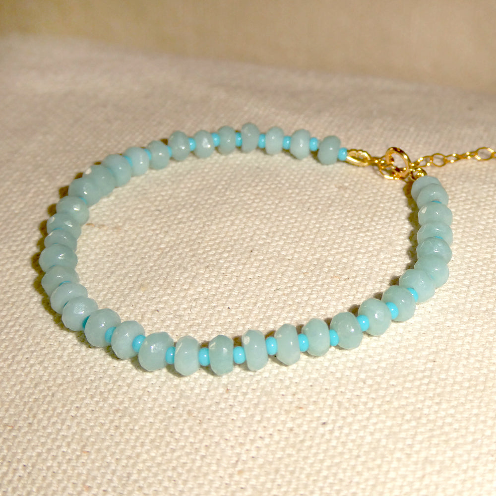 Faceted amazonite, such a pretty hue of blue.  Part of our Archives Collection.  We uncovered an abundance of gems and objects- 30 plus years of legacy, so we made you your new favorite bracelet.  Think blue skies ahead...