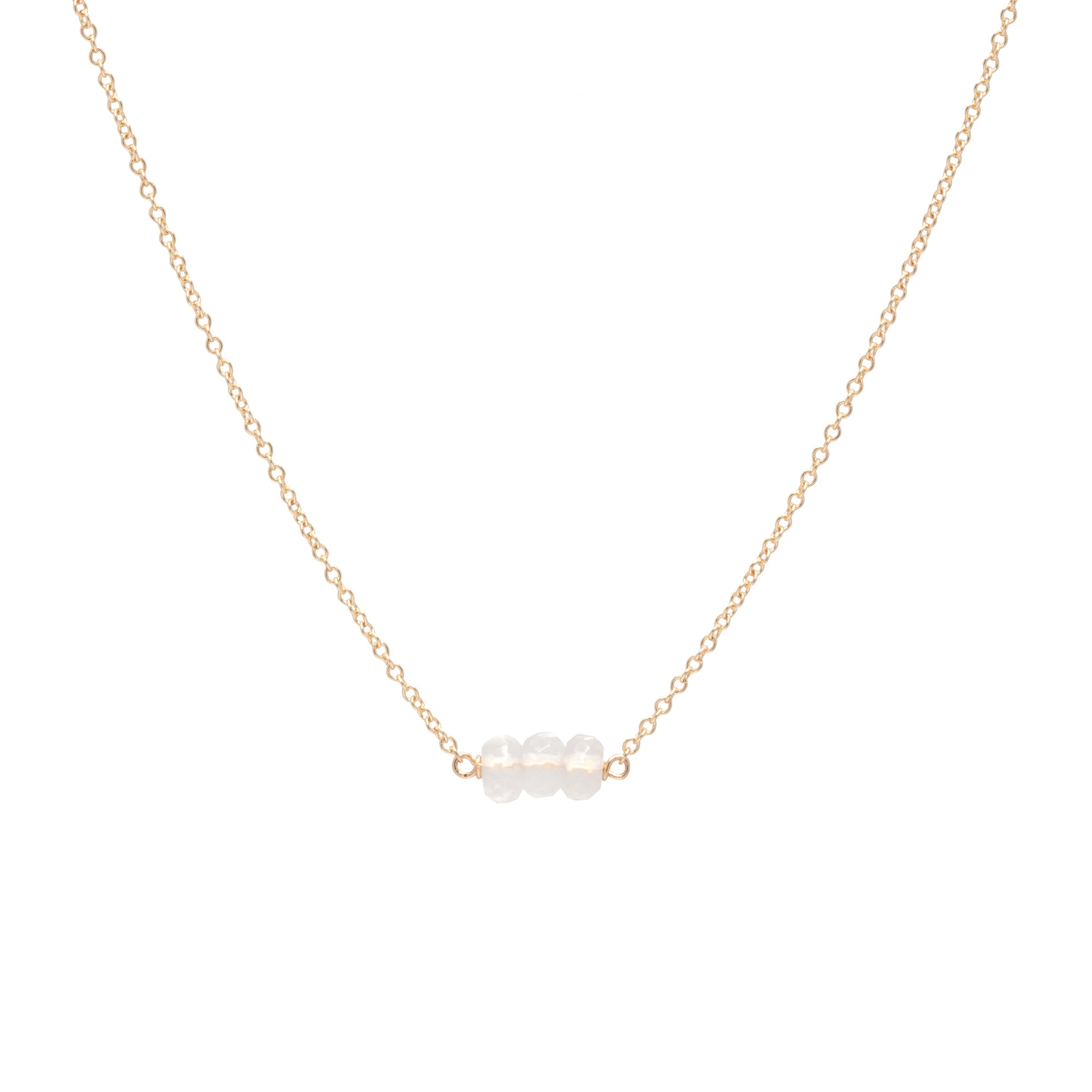Our birthstone jewels, a best selling collection! Three little gems on a dainty chain with crystals, a symbol of strength and April.