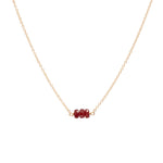 Our birthstone jewels, a best selling collection! Three little gems on a dainty chain, rubies symbols of creativity and July.