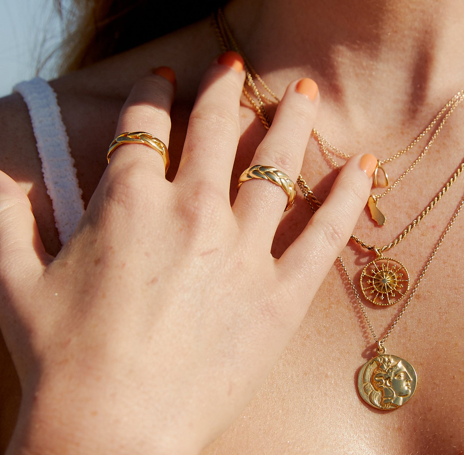 Woven Wide Band Ring to upgrade your ring stack. Never gonna take it off…Many ways to wear it. Great on any finger, or throw it on a necklace or chain you already own, to add a modern vibe.